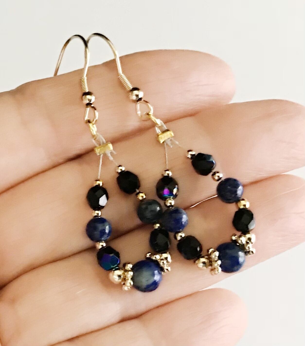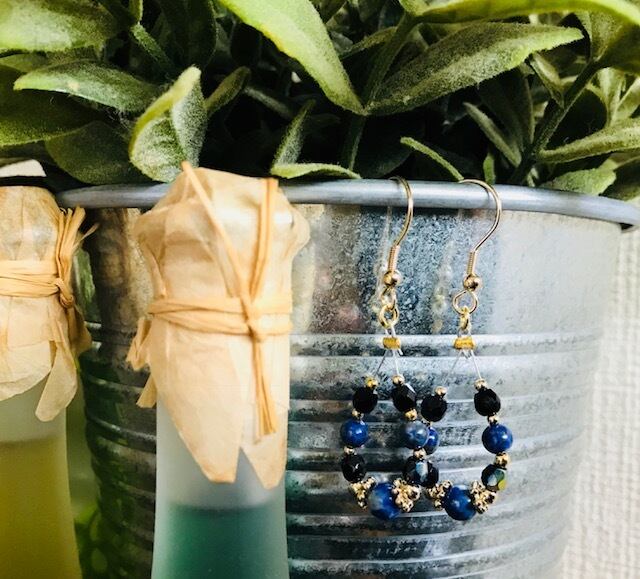 天然石のラピスラズリとビーズやメタルパーツを使用したピアスです。
